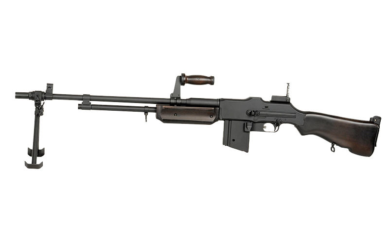 The internal components of the replica include a **metal Hop-up chamber** and a Gearbox V3 with the **MOSFET Eschooter V3** system, which ensures precise shots and excellent responsiveness. Quick spring replacement and the trolley with a full metal tooth ensure higher durability. Thanks to the **13:1 SS gears** and the ball-bearing spring guide, the replica achieves excellent performance and rate of fire. The replica is powered by a High Torque motor, making it exceptionally powerful and efficient, also allowing the installation of a stronger spring.